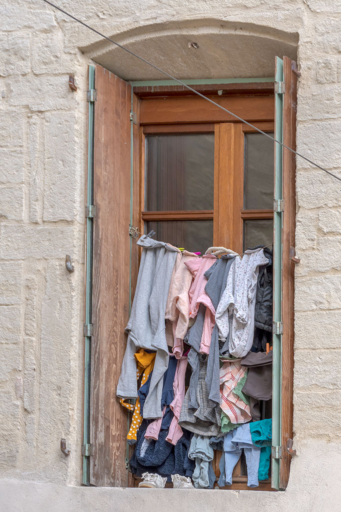 Ici on comprend mieux la querelle de jeunes amoureux. L’un des deux, furibond, jeta les vêtements par la fenêtre. Pour bien lui montrer qu’il/elle est désormais en dehors de sa vie.