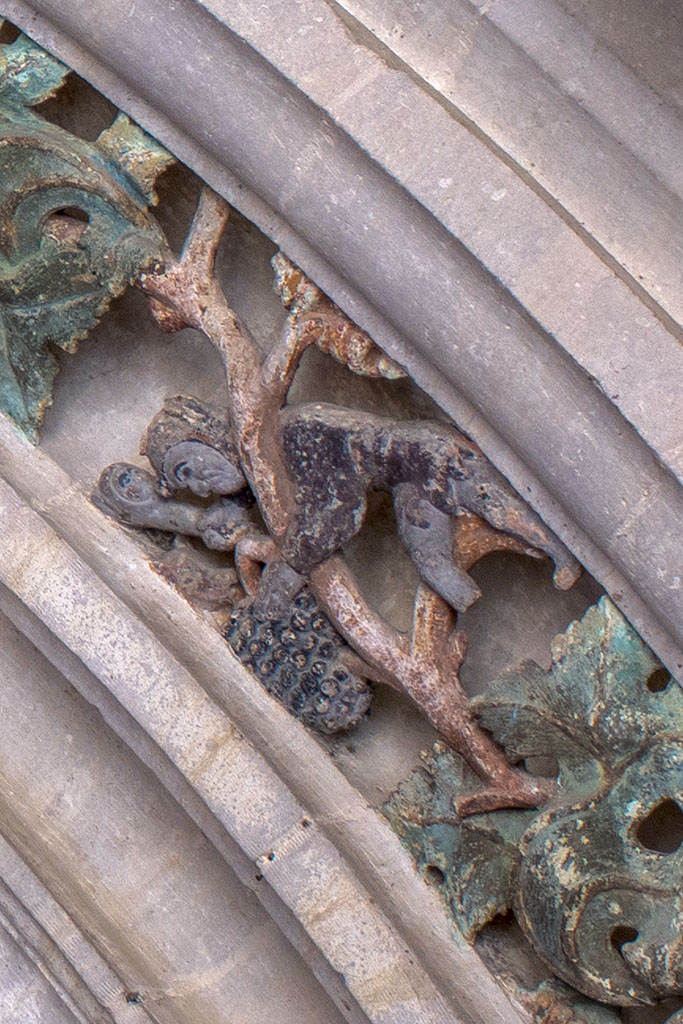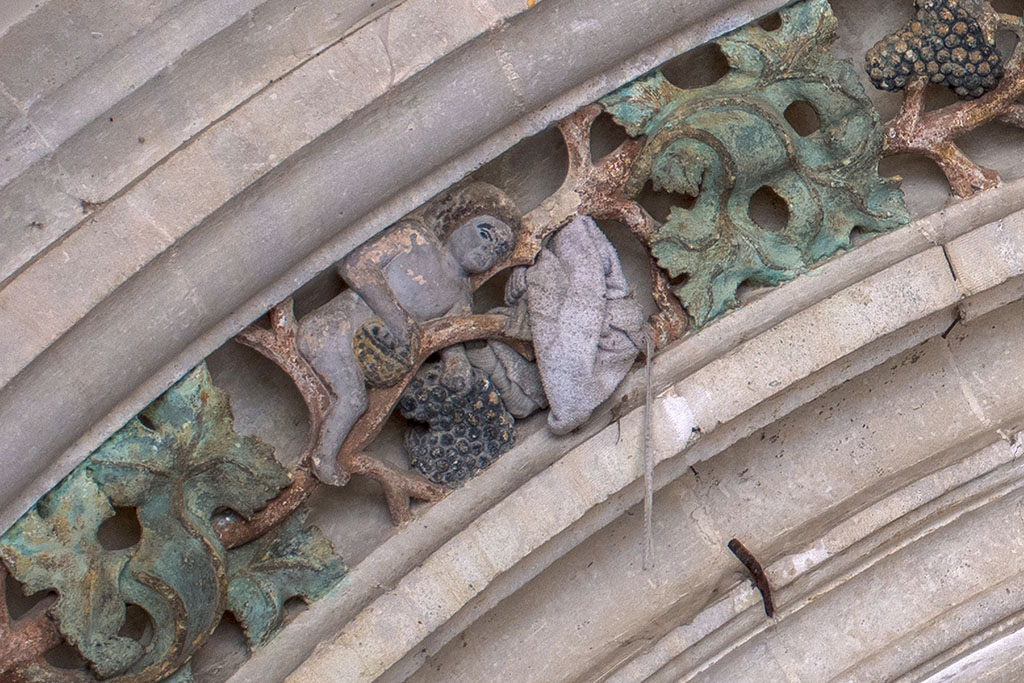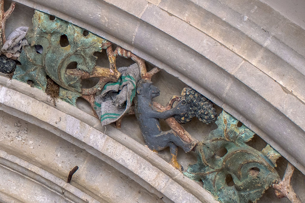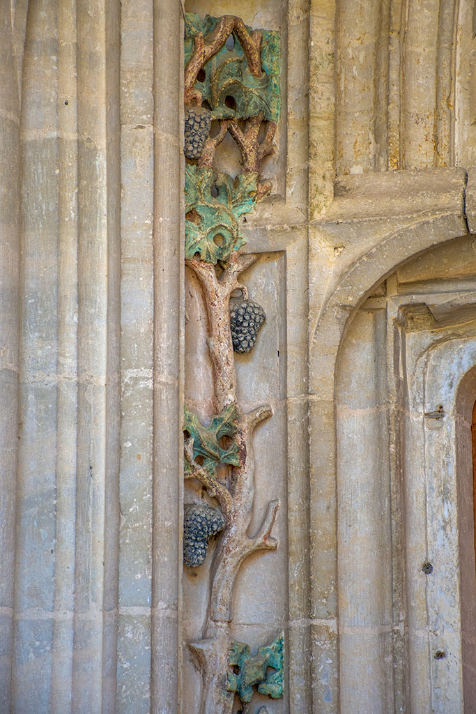 Il suffit de lever les yeux vers le porche de l’église Saint-Rémi (Fin XVe siècle, début XVIe siècle) pour encore admirer telles une BD les sculptures polychromes du passé viticole du village.
